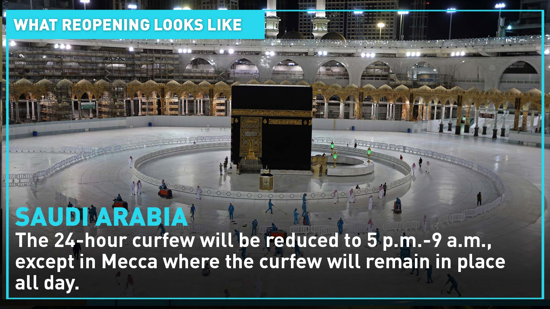 * The 24-hour curfew will be reduced to 5 p.m.-9 a.m., except in Mecca where the curfew will remain in place all day.