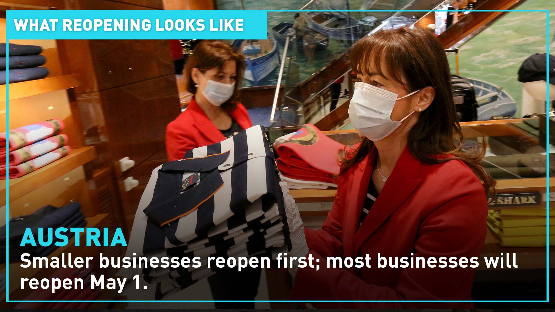 * Smaller businesses reopen first; most businesses will reopen May 1.