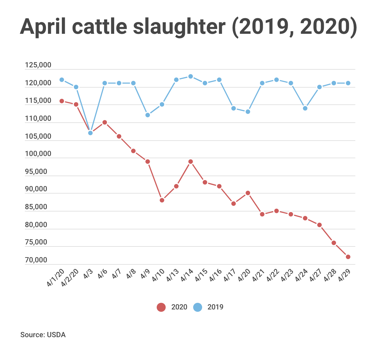 On April 29, estimated cattle slaughters was 72,000, compared to 121,000 in 2019.