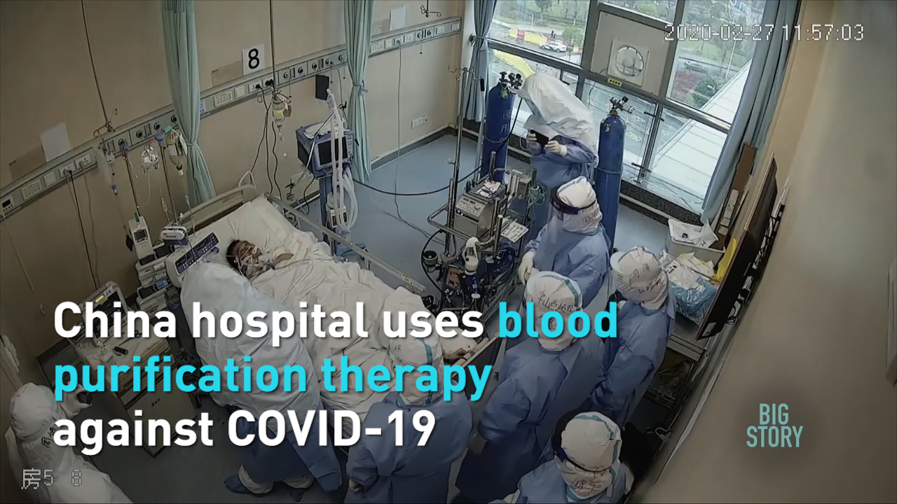 In this clip from CGTN America's Big Story: Widespread, the patient eventually completes his blood purification therapy, with no increase in inflammation. All of his organs are saved. Doctors take him off assisted ventilation and he resumes breathing on his own.