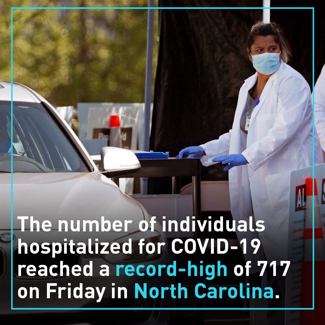 In North Carolina, the number of patients hospitalized for COVID-19 reached a record high of 717 on Friday.