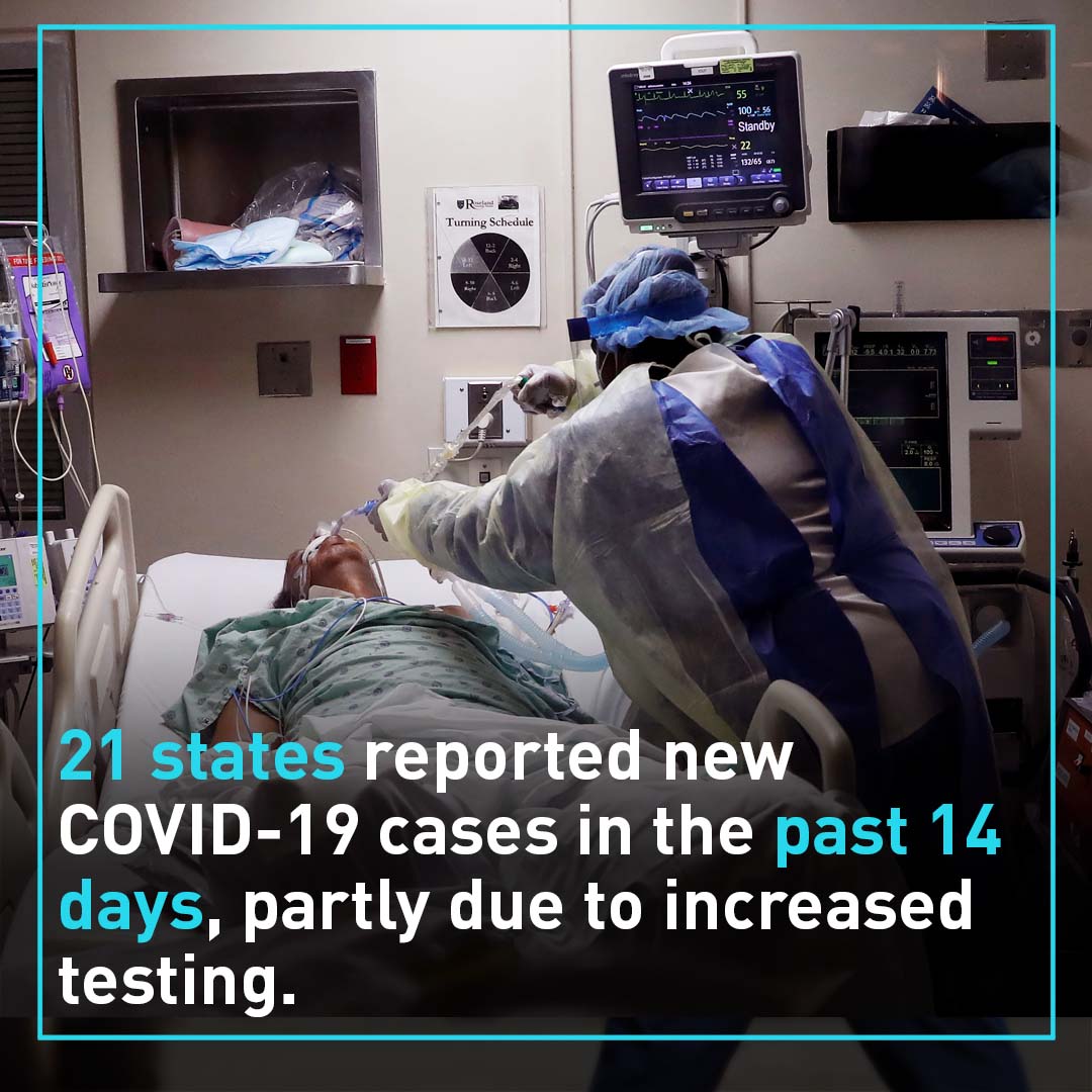 According to New York Times, 21 states including California, Texas and Arizona report a growth in confirmed cases over the past 14 days.