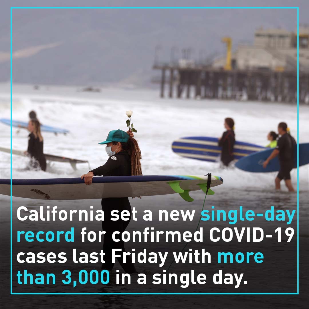 California set a new single-day record for confirmed COVID-19 cases last Friday with more than 3,000 in a single day.