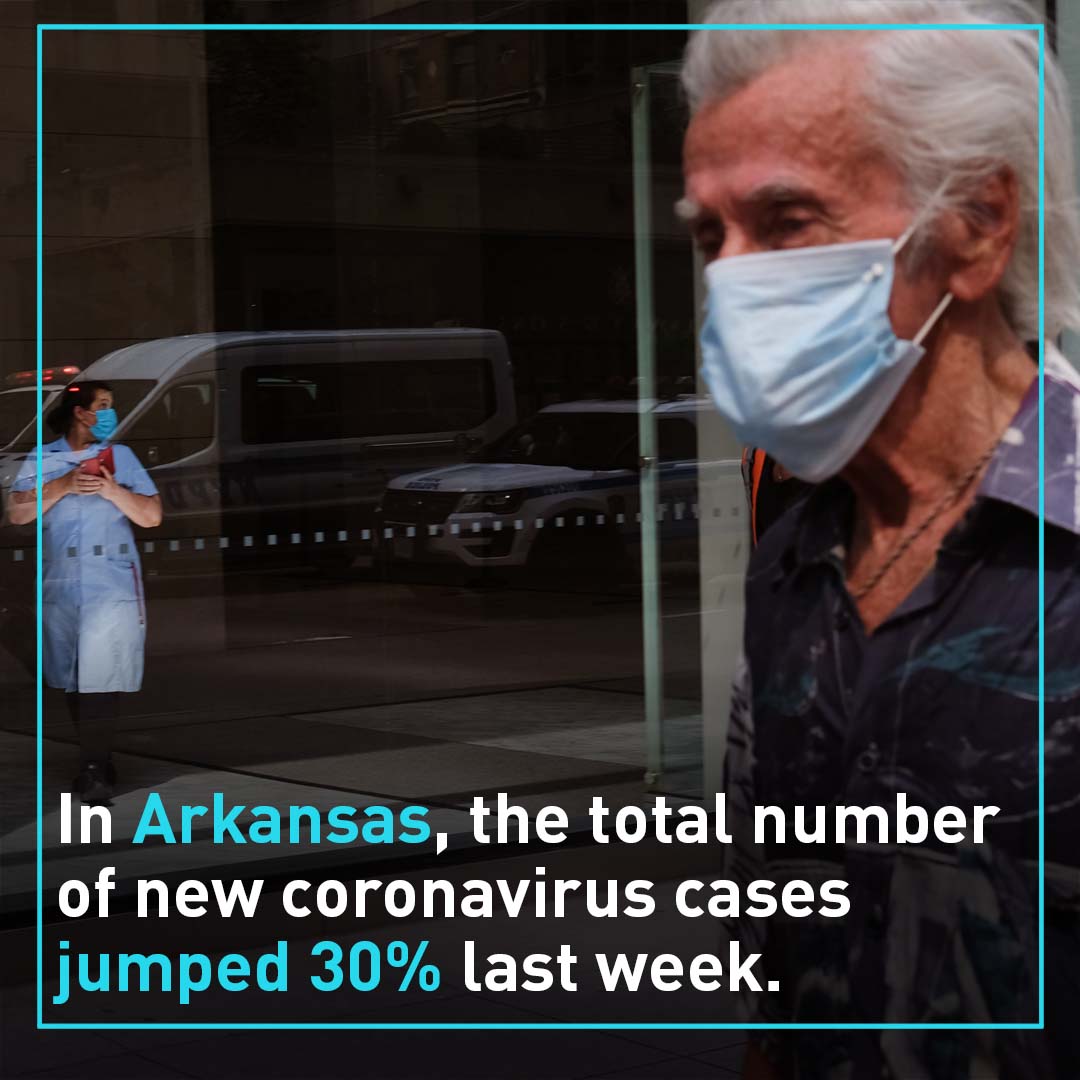 The total number of Arkansas coronavirus cases jumped 30% in the past week. The 2,173 new cases amounted to more than 300 per day.