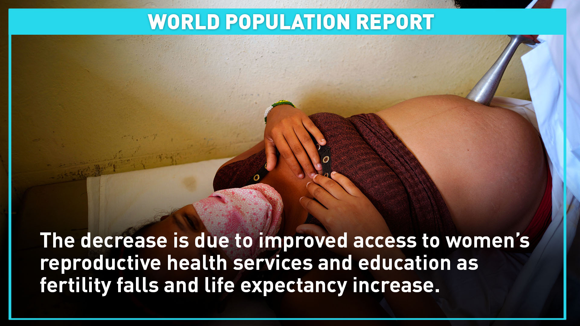 The decrease is due to improved access to women’s reproductive health services and education as fertility falls and life expectancy increase.