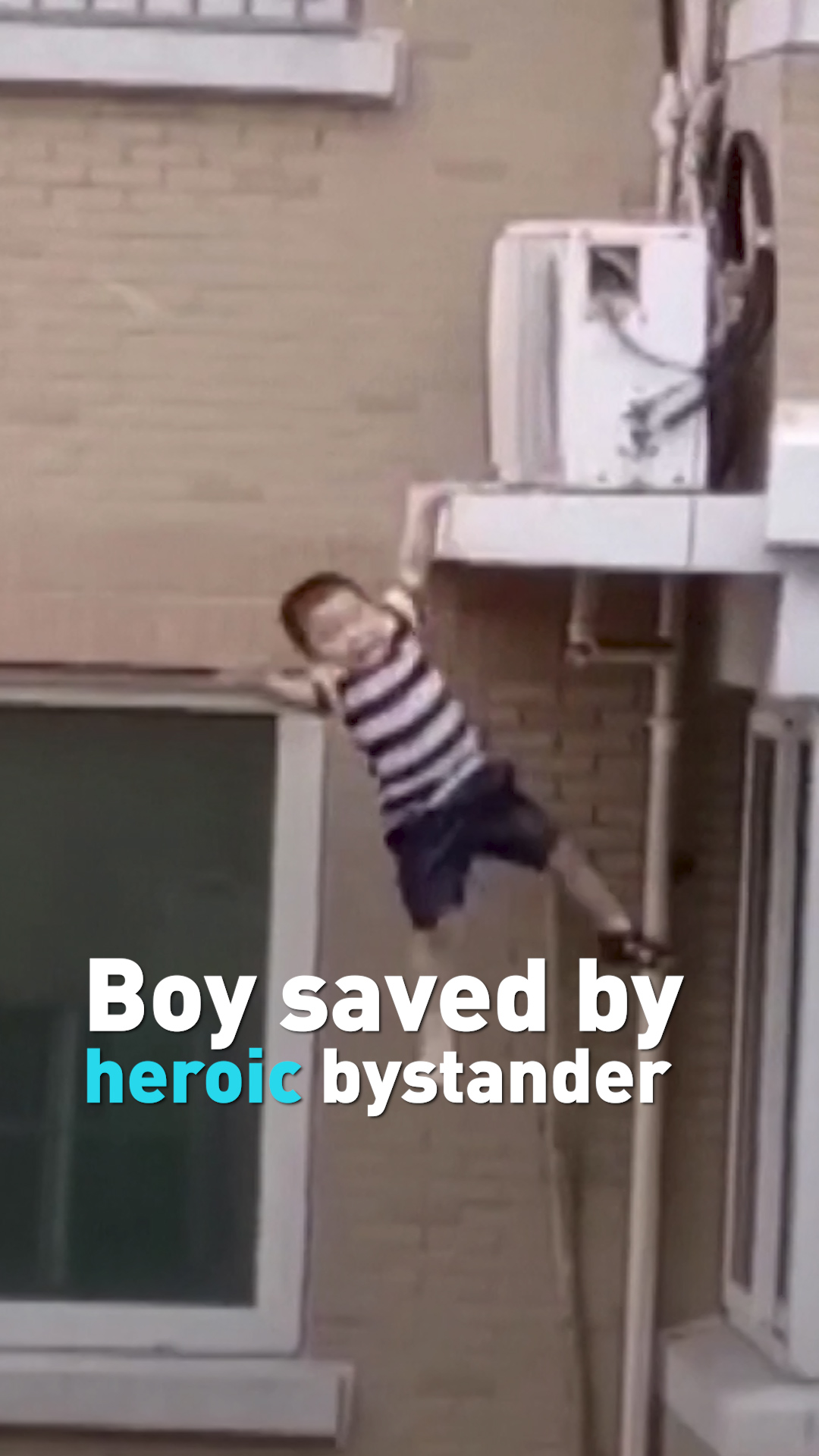 A two-year-old boy was miraculously rescued by a local resident after falling from the fifth floor apartment in east China's Jiangsu Province last Thursday.
