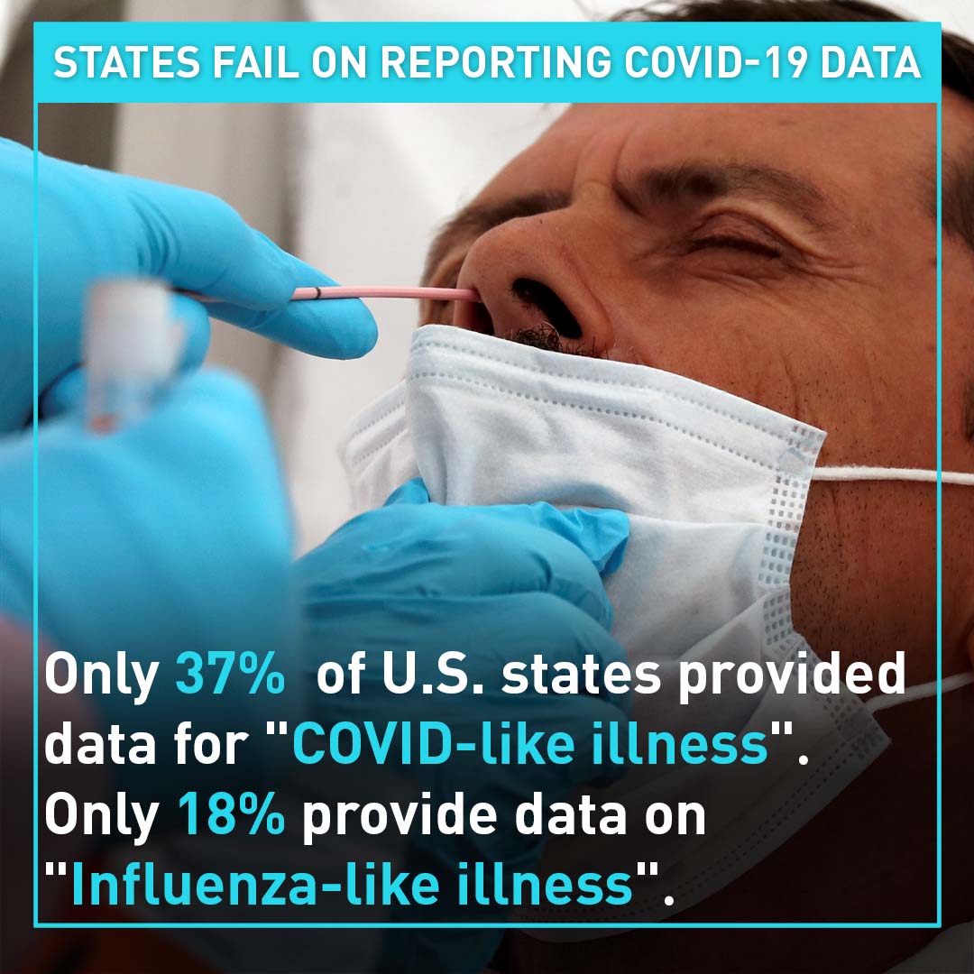 For another essential indicator - i.e., trends in "influenza-like illnesses" (ILI) and COVID-like illnesses (CLI) - only 18% of U.S. states provide data for ILI, and 37% report CLI.