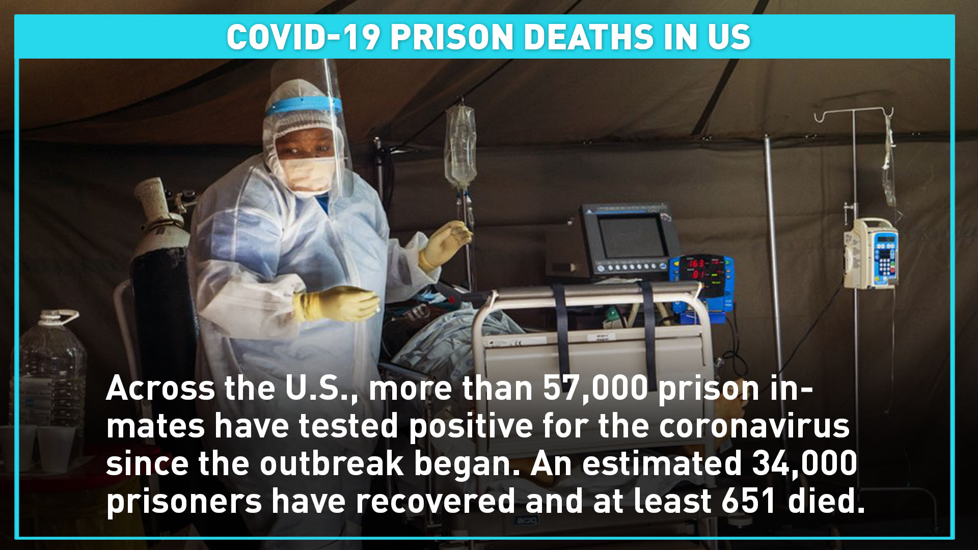 Across the U.S., more than 57,000 prison inmates have tested positive for the coronavirus since the outbreak began. An estimated 34,000 prisoners have recovered and at least 651 died.