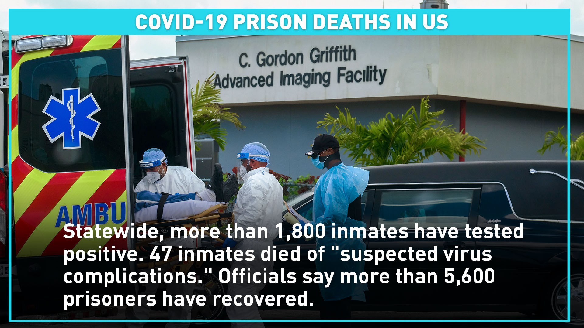 Statewide, more than 1,800 inmates have tested positive. 47 inmates died of "suspected virus complications." Officials say more than 5,600 prisoners have recovered.