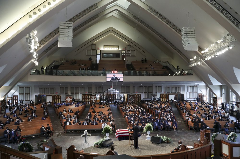 Former U.S. Presidents Bill Clinton and George W. Bush, and Speaker of the House Nancy Pelosi, also spoke at Lewis's funeral, delivering words of praise for the civil rights icon, who spent 33 years in the U.S. House of Representatives.