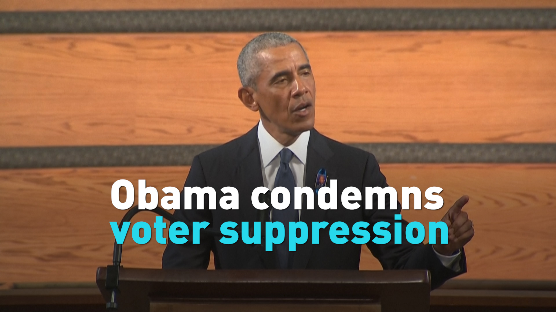Former U.S. President Barack Obama issued a stark warning at John Lewis's funeral on Thursday that the voting rights and equal opportunity that the late American civil rights icon had championed were under threat, heading into the 2020 presidential election.