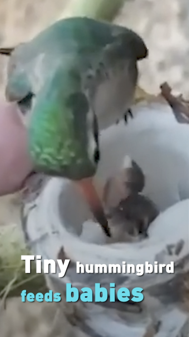 Watch the smallest of birds feed her even smaller chicks.