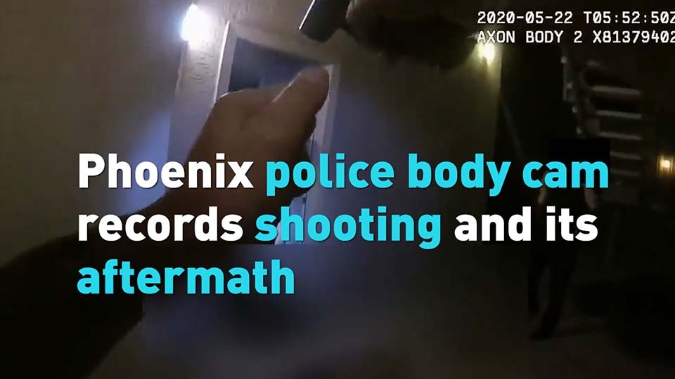 Phoenix police released body cam footage showing Ryan Whitaker's shooting and its aftermath. The incident started over a noise complaint from Ryan’s neighbor upstairs who called police twice. Ryan opened the door holding his gun when confronting the two police officers.
