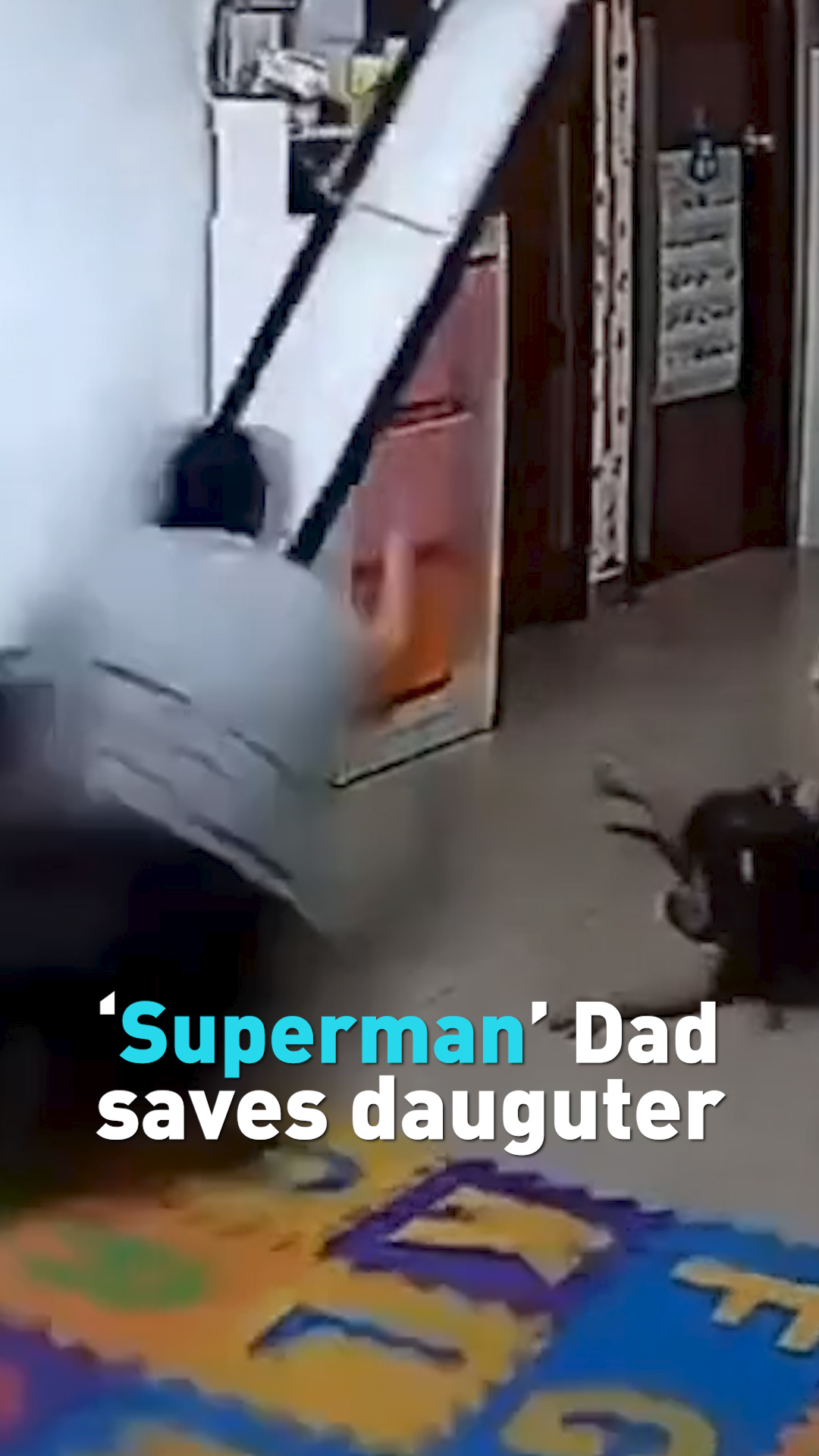 Watch: this Chinese dad turns into Superman in a second to save his daughter from a falling mirror.