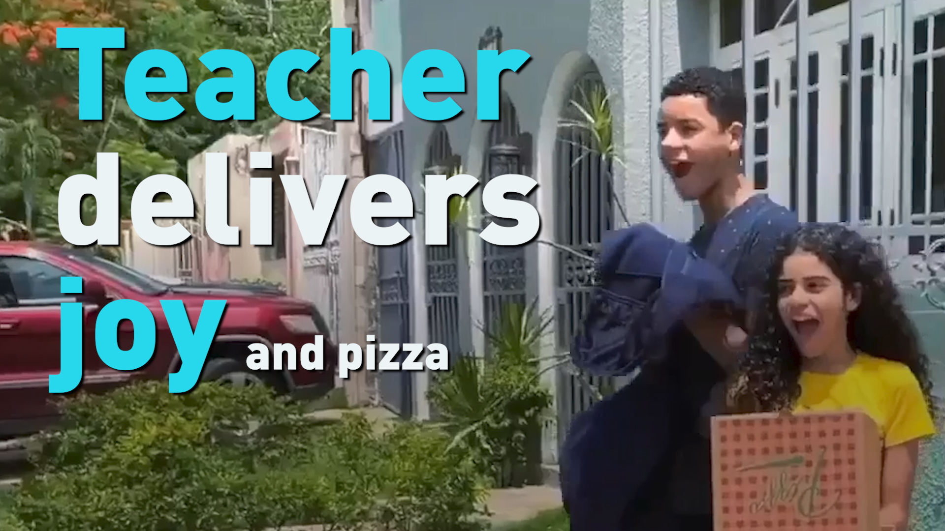 I’m not crying, you’re crying! Teacher surprises kids at home, with pizza.