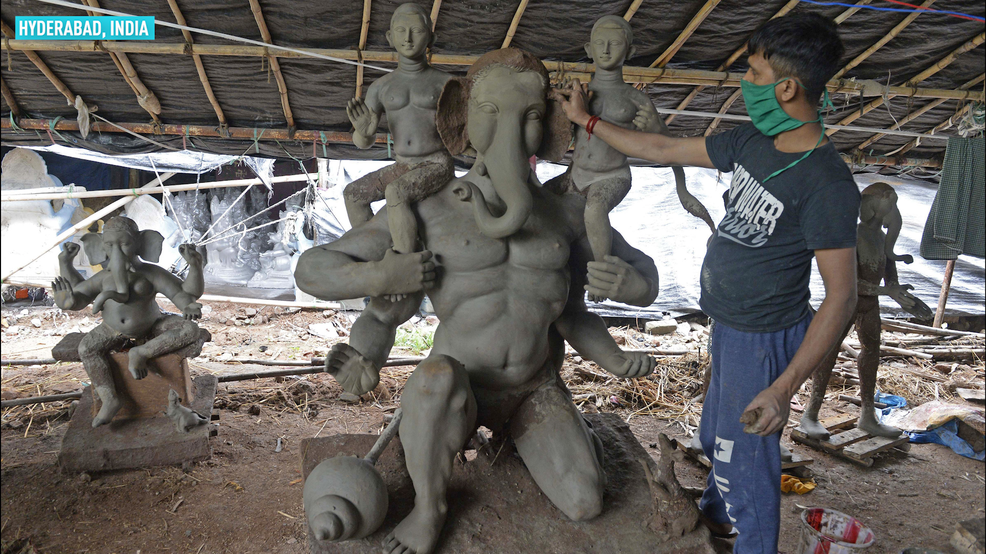 All around India preparations are being made and clay idols of elephant-headed Ganesha colorfully adorned.