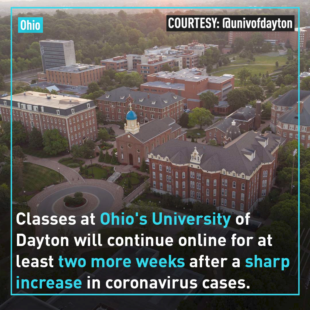 The University of Dayton in Ohio will continue online for at least two more weeks as the school has reached its level 4 'warning phase' after a sharp increase in coronavirus cases seen last week.