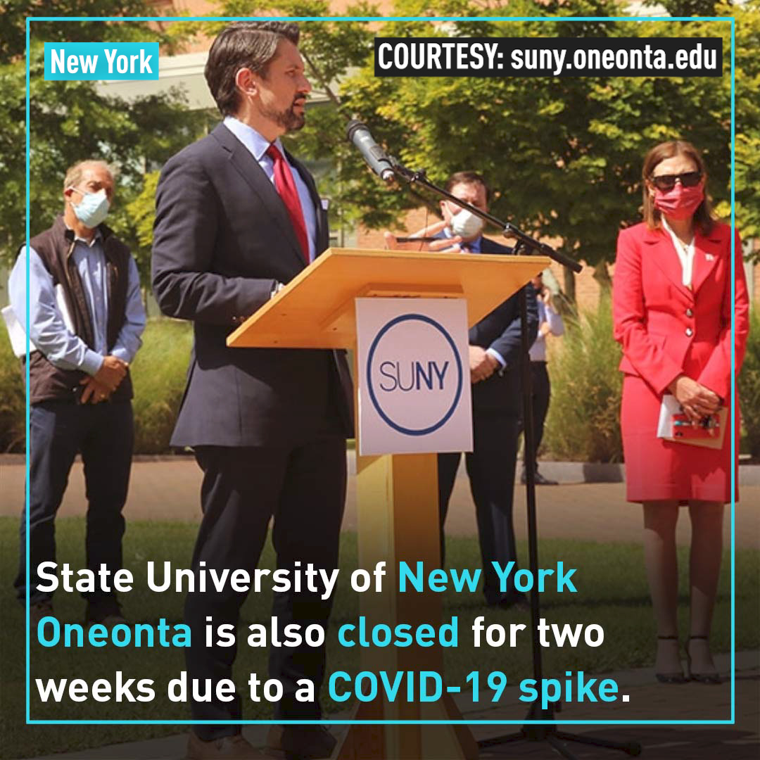 Meanwhile, the State University of New York Oneonta announced this weekend it was shutting down in-person classes for two weeks in response to a COVID-19 outbreak.