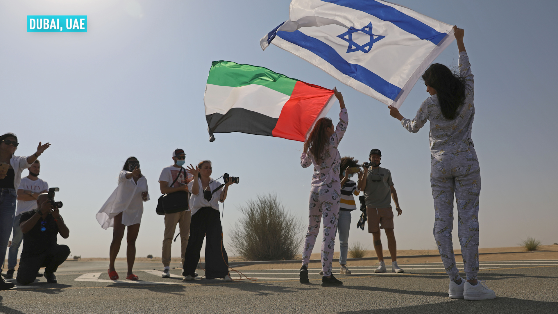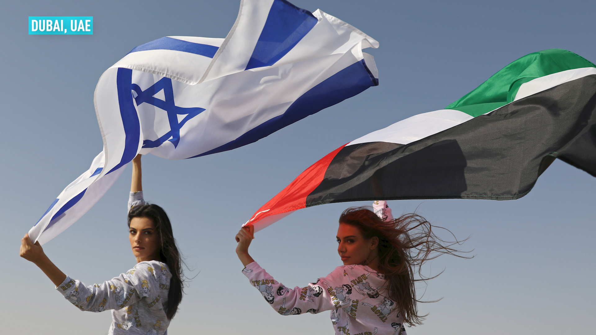 Israeli model May Tager poses with UAE-based model Anastasia in Dubai during a photoshoot for a Israeli woman's pyjama brand. Tager is the first Israeli model to shoot in United Arab Emirates, after the two nations agreed to normalise relations last month.