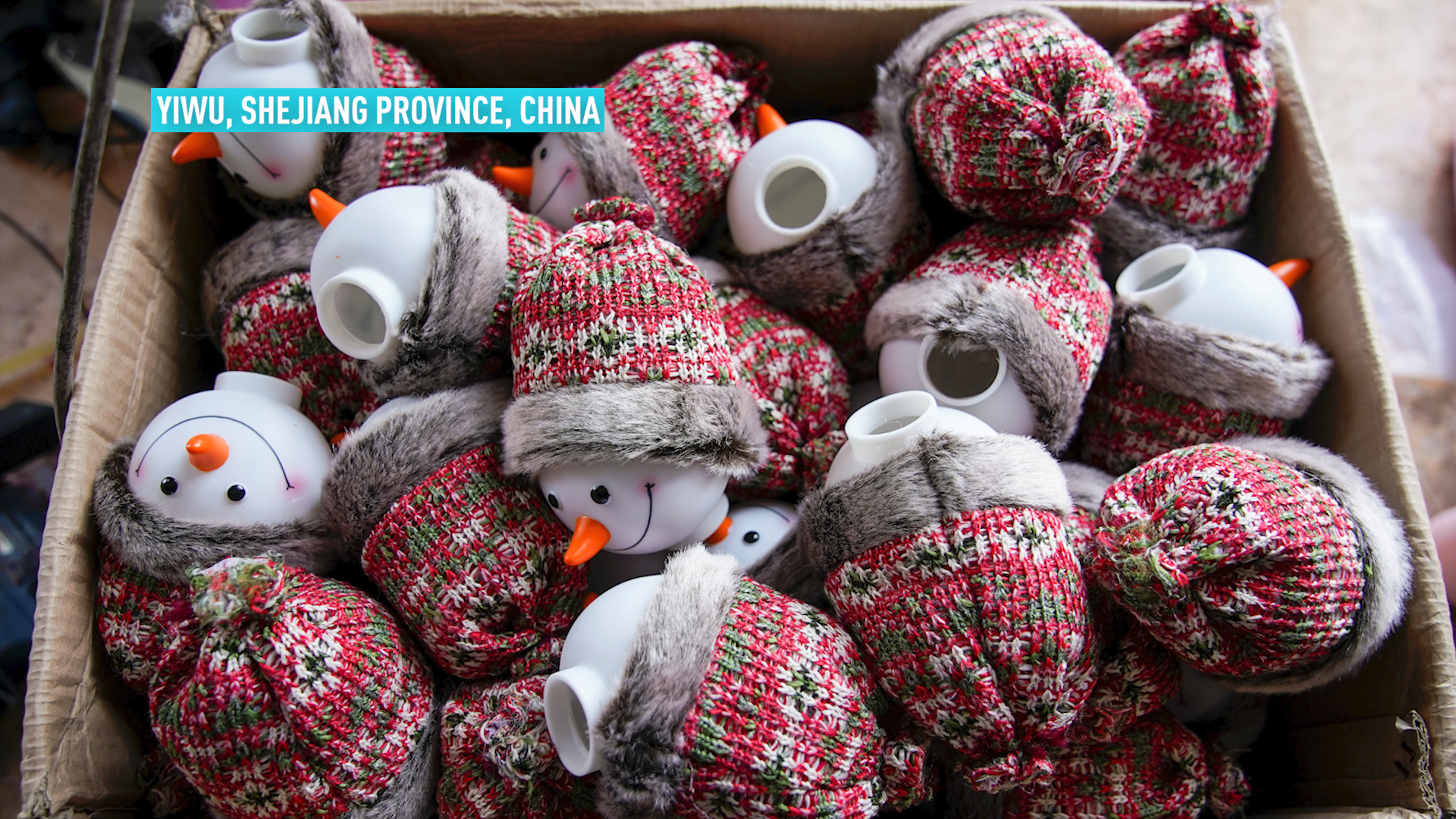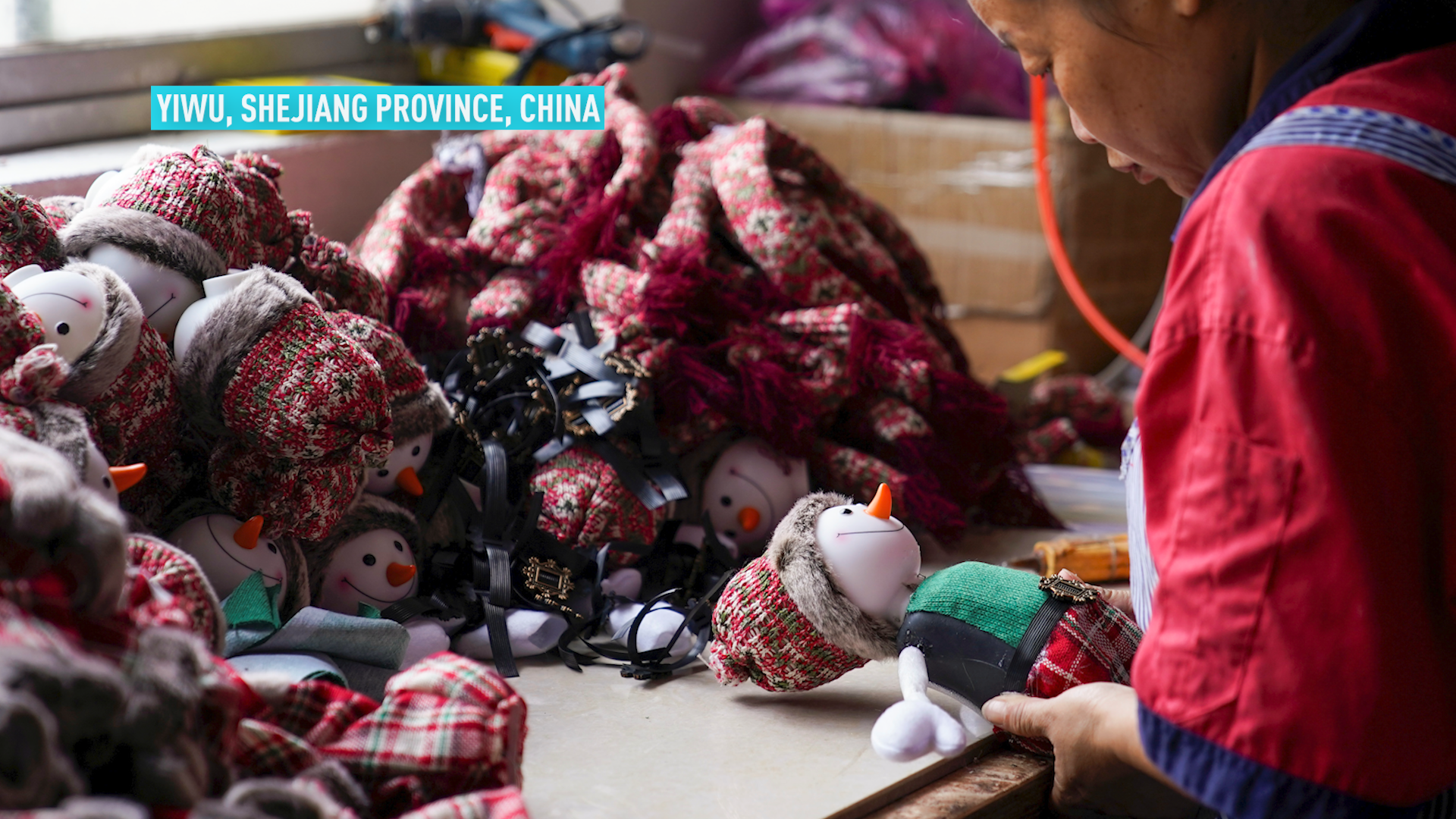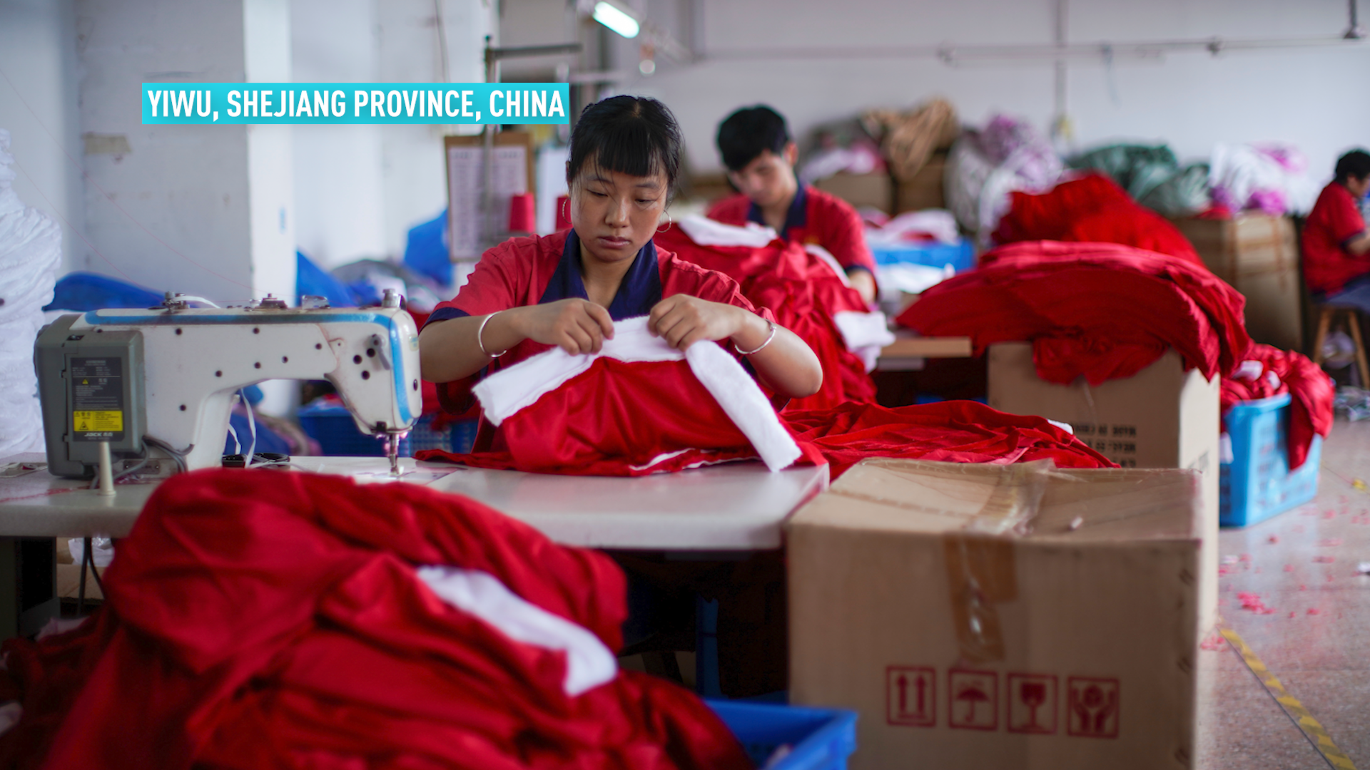 Workers at at Fuye toy factory in Yiwu, Zhejiang province, China are stitching, testing and putting together Christmas products for this year. COVID-19 impacted the city’s production of Christmas products. Yiwu is city dedicated to Christmas all year round. It produces 80% of the Christmas consumer goods exported globally.