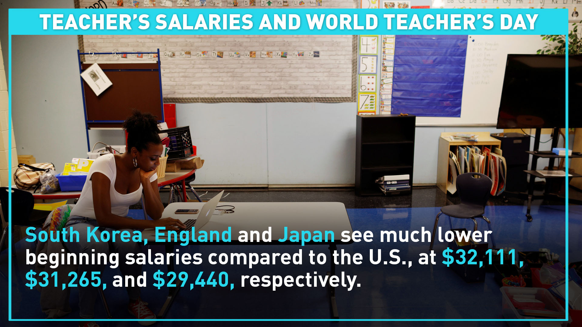 Monday marks World Teacher's Day, celebrating the importance of teachers and educators. Take a look at the beginning salaries teachers make from around the world and how some can make more with 15 years of experience.