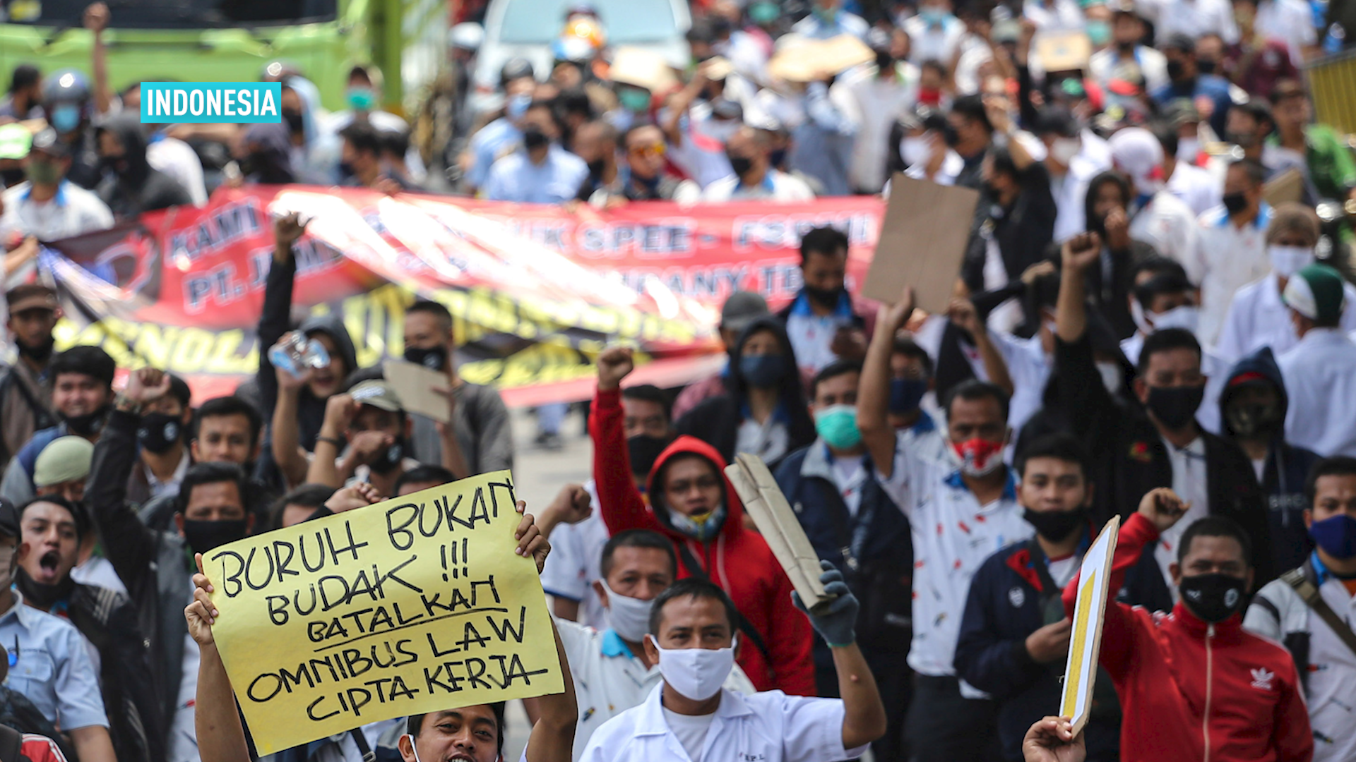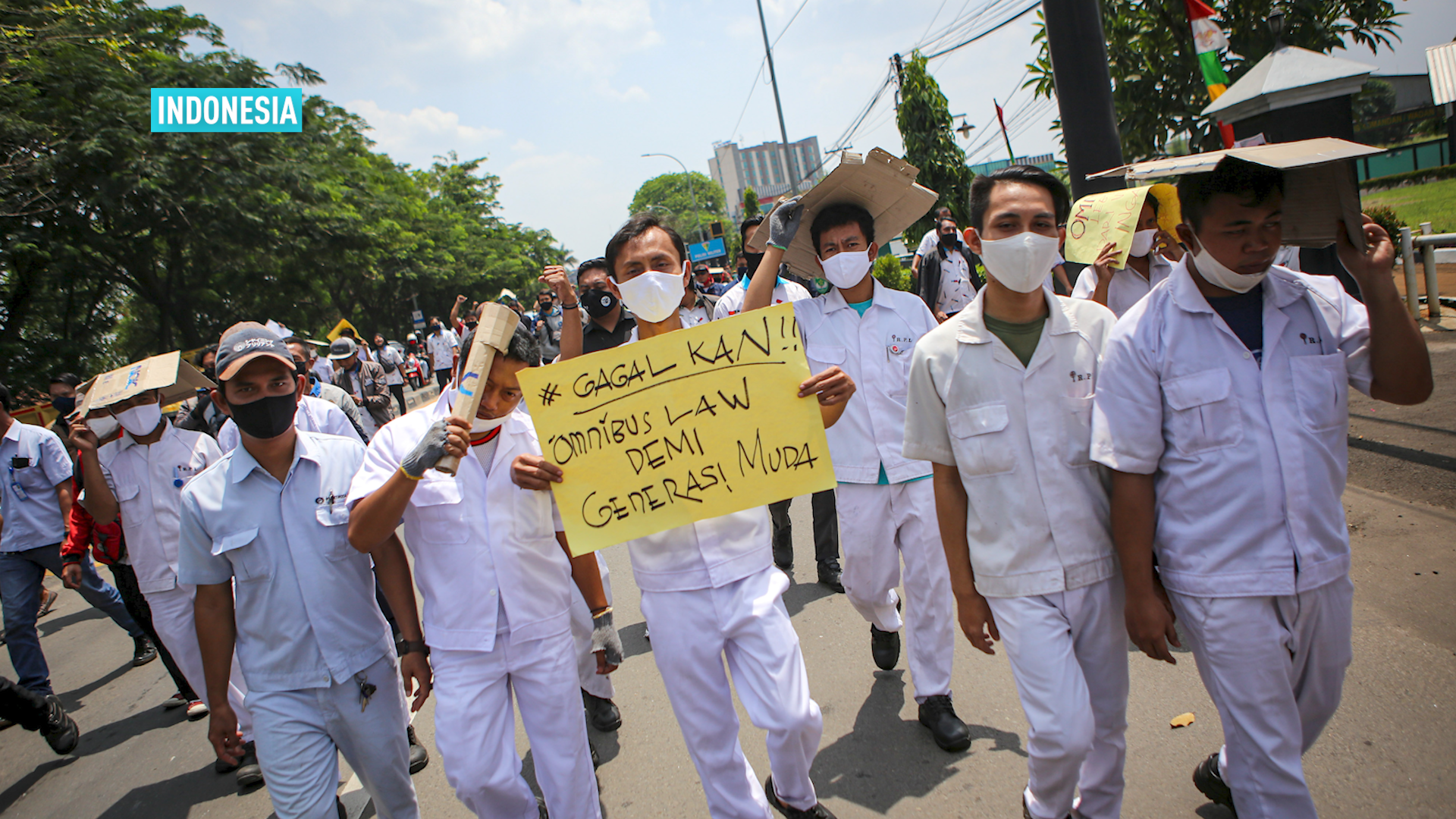 Indonesians are protesting labor reforms in a new “jobs creation” bill that protesters say will weaken environmental protections and worker’s rights.