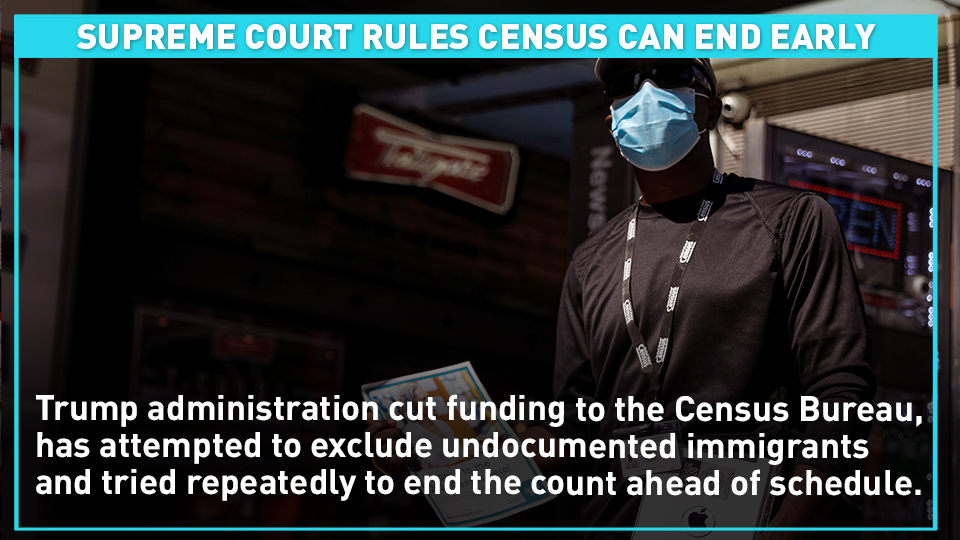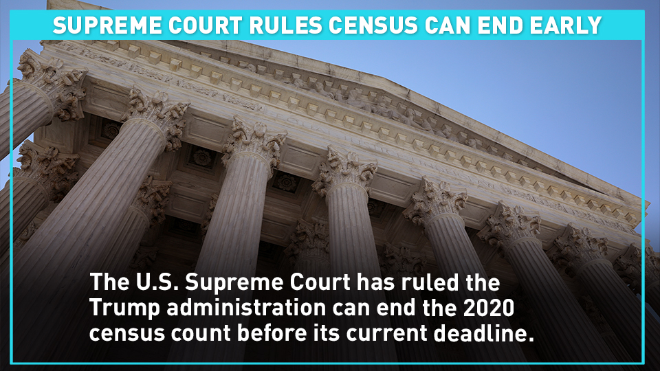 The U.S. Supreme Court has ruled the Trump administration can end the 2020 census count before its current deadline.