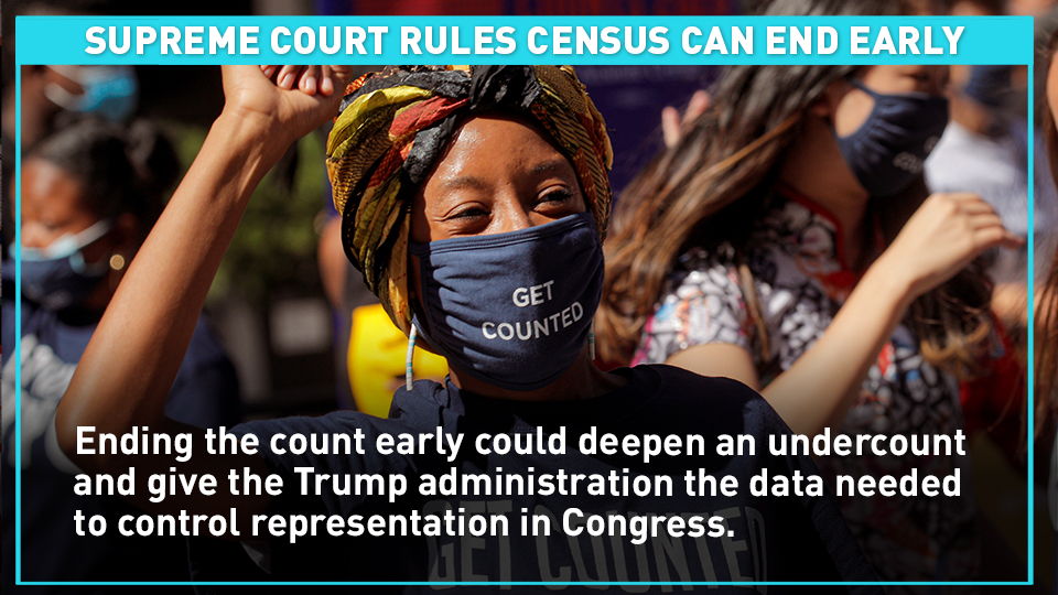 In its push to end the count early, the Trump administration argued the Bureau would need to stop counting immediately so it could make the legal deadline of December 31 for delivering results to the president. The Trump administration would have the data needed to control representation in Congress, no matter who wins the presidential election.