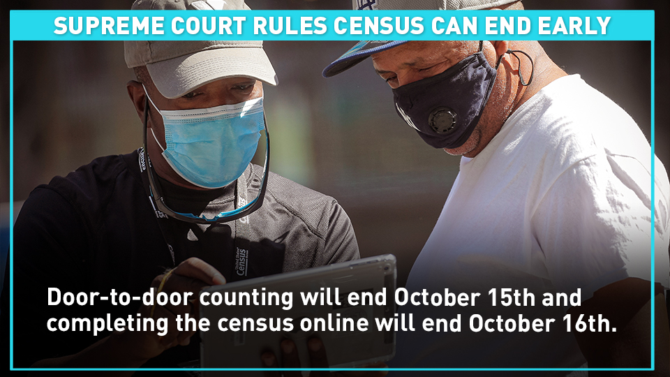 Door-to-door counting will end October 15th and completing the census online will end October 16th.