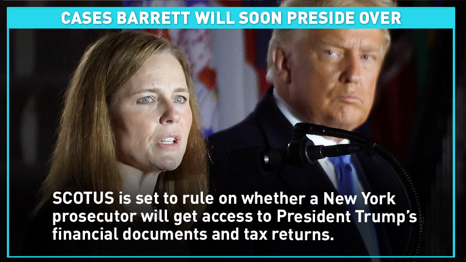 In her first week on the court, Barrett is expected to hear a range of important cases, including cases related to the 2020 election. Here are three cases Barrett will preside over in the coming days: