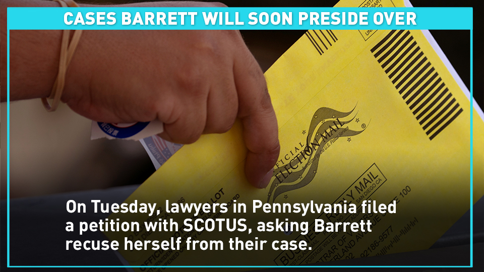 On Tuesday, lawyers representing a Pennsylvania county, filed a petition with SCOTUS, asking Barrett recuse herself from their case.
