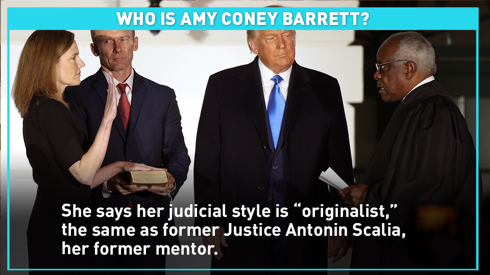 She says her judicial style is "originalist," the same as former Justice Antonin Scalia, her former mentor.