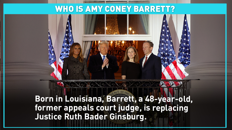 Born in Louisiana, Barrett, a 48-year-old, former appeals court judge is replacing Justice Ruth Bader Ginsburg. Before being nominated to appeals court judge in 2017 by President Trump, Barret was a law professor at Notre Dame for 15 years. She lives in South Bend, Louisiana, with her husband and seven children.