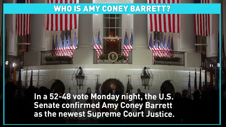 In a 52-48 vote Monday night, the U.S. Senate confirmed Amy Coney Barrett as the newest Supreme Court Justice.