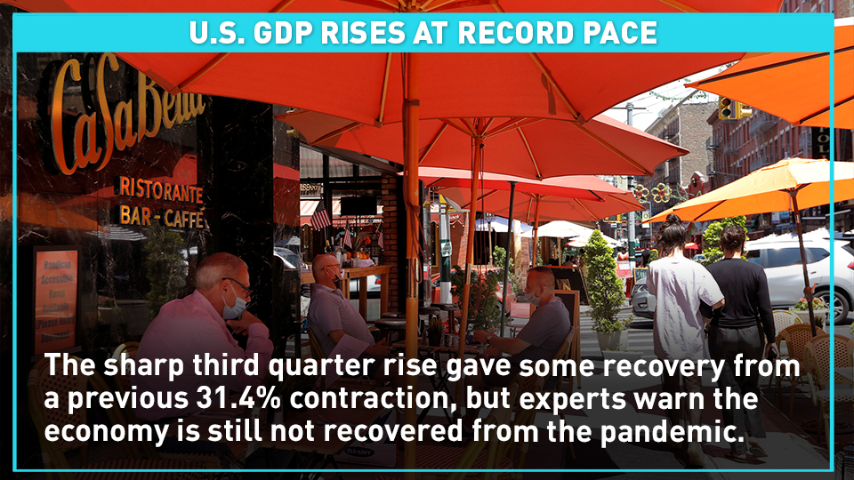 The sharp rise during the third quarter provided some recovery from a 31.4% contraction in the three months prior, but experts warn the economy is still not recovered from the pandemic.