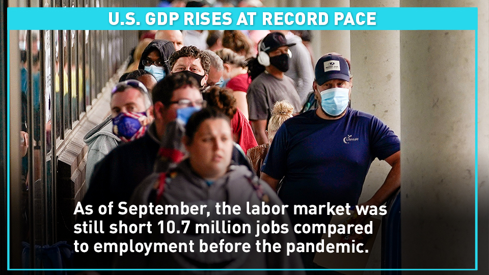 As of September, the labor market was still short 10.7 million jobs compared to employment before the pandemic.