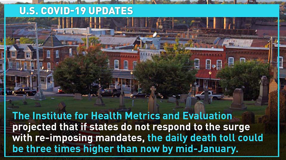 The Institute for Health Metrics and Evaluation at the University of Washington School of Medicine projected that if states do not respond to the surge with re-imposing mandates, the situation could get worse.