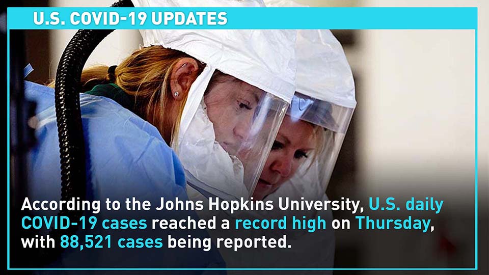 According to the Johns Hopkins University, U.S. daily COVID-19 cases reached a record high on Thursday, with 88,521 cases being reported. That's 4,790 more cases than last Friday's record high of 83,731 cases.