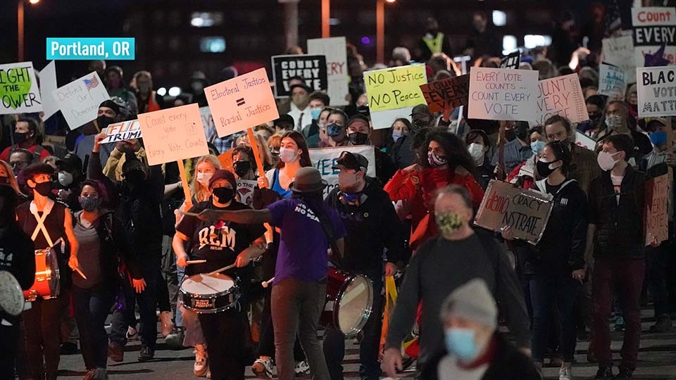 Protests continued in several U.S. cities to call on election officials to “count every vote” since Wednesday in response to Trump campaign's aggressive efforts to challenge the counting of absentee ballots.