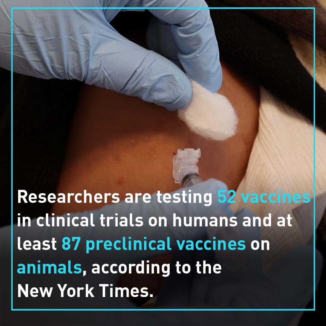 Vaccines usually require years of research and testing. The New York Times also reports researchers are testing 52 vaccines in clinical trials on humans and at least 87 preclinical vaccines on animals.