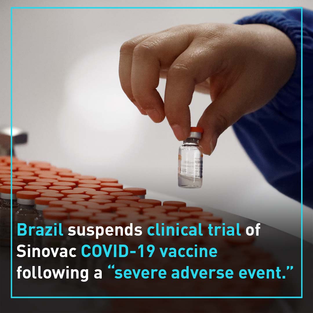 On Tuesday, Brazil suspended the trial of a Chinese COVID-19 vaccine due to a “serious adverse event” involving a volunteer.