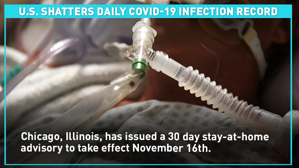 Chicago, Illinois, has issued a 30 day stay-at-home advisory to take effect November 16th.
