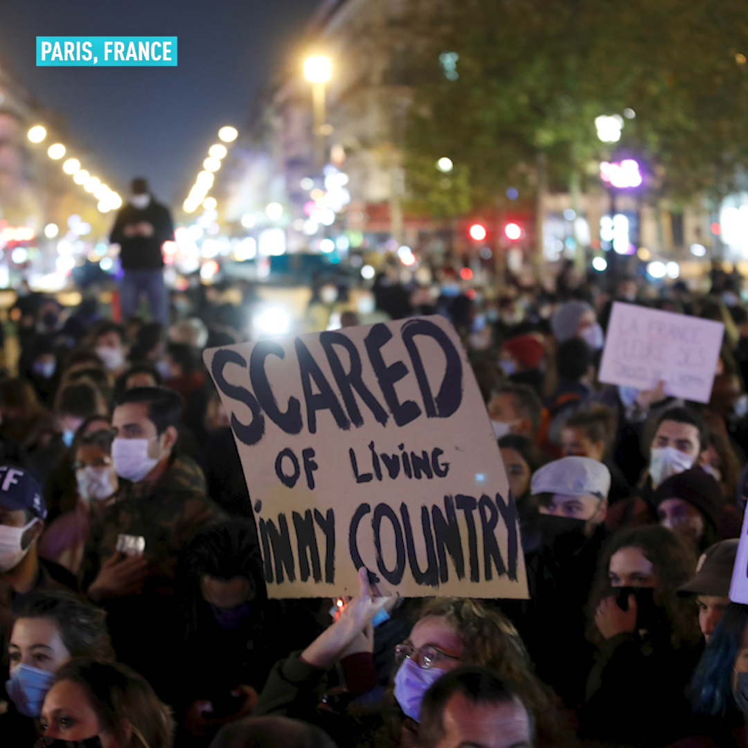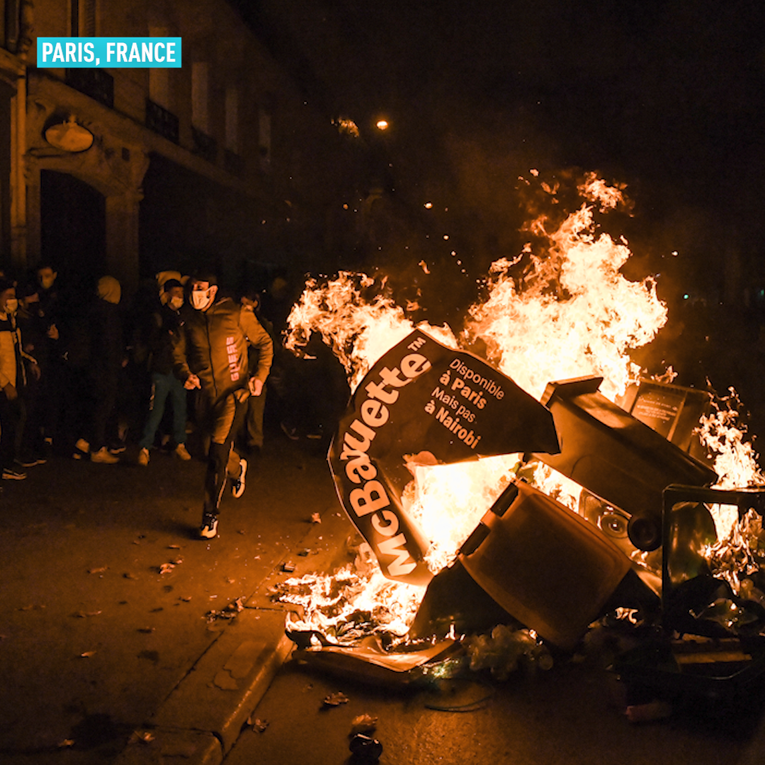 Protests erupted in Paris after police forcefully cleared out a temporary migrant camp at Place de la Republique. The protests come as Parliament voted to move forward with a new security bill on Tuesday. Critics say the bill will make it harder to record police brutality.