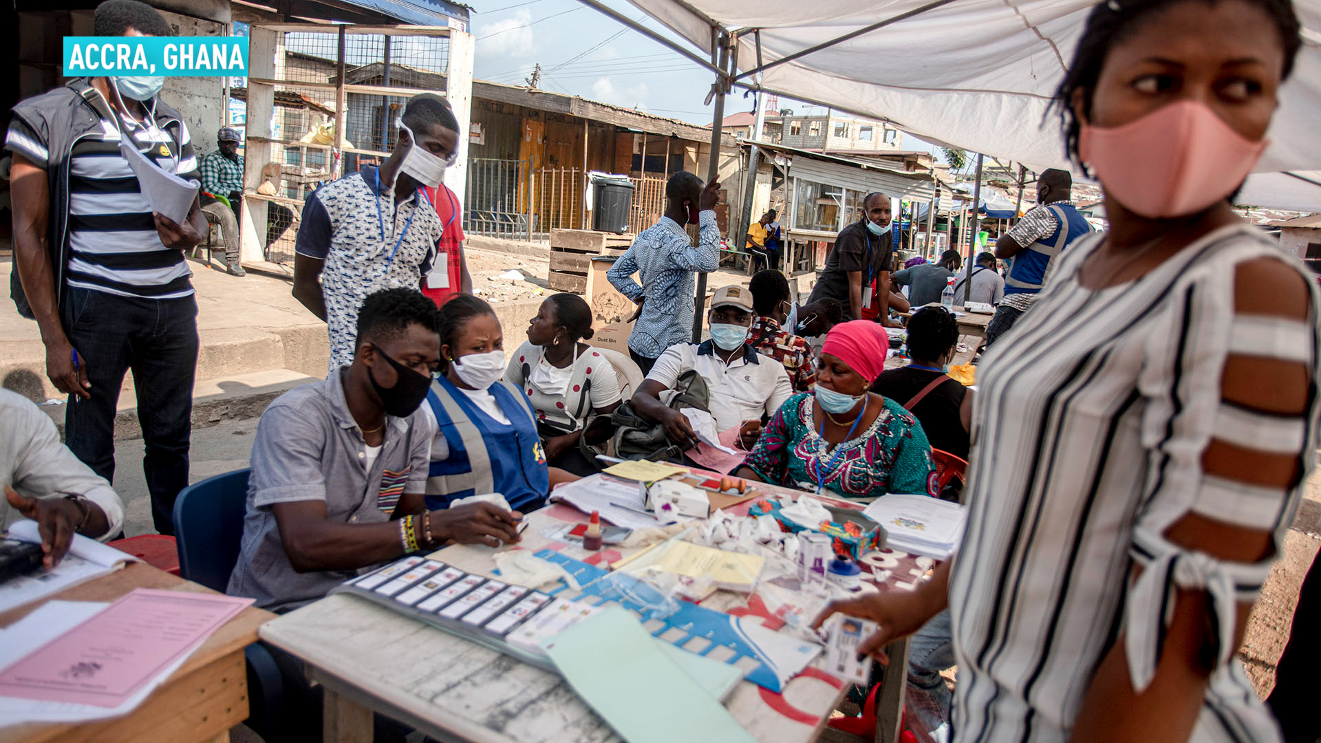 Voters are heading to the polls in Ghana Monday, as a tight race is underway for sitting President Nana Akufo-Addo, who is running for a second term, as her faces 11 candidates include his predecessor John Dramani Mahama. Here are some of the scenes from people casting their ballots.