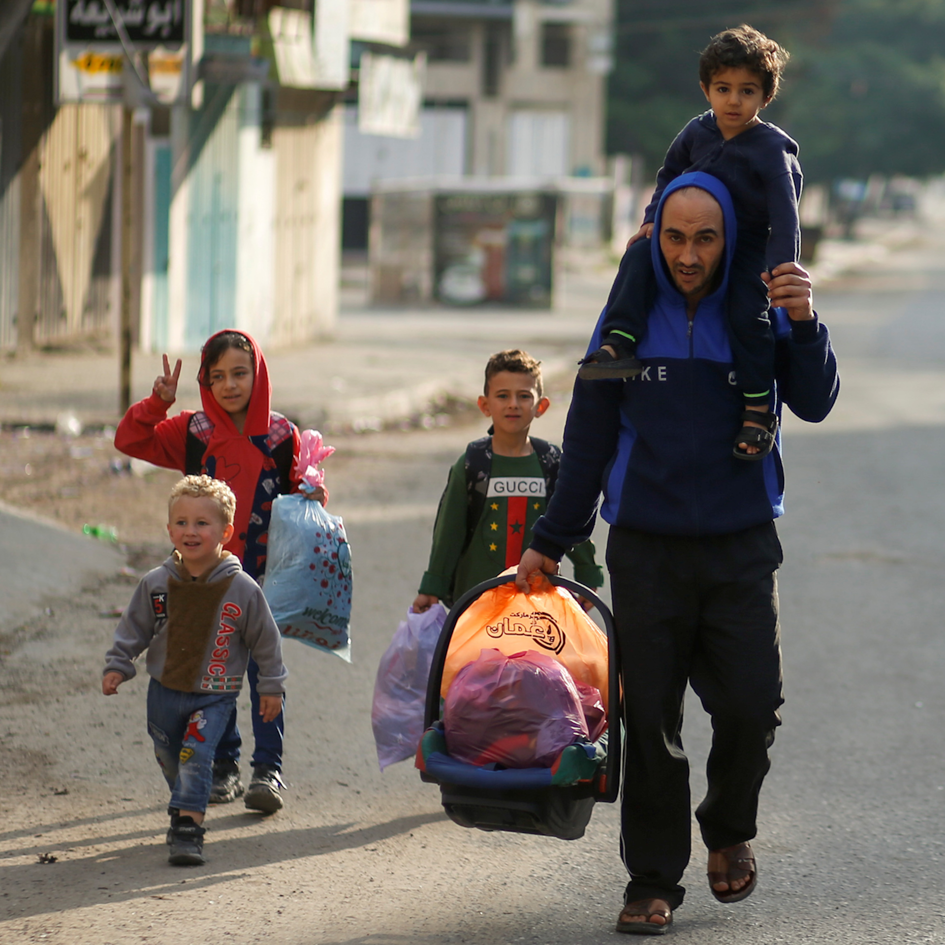 Families in north Gaza escaped collapsed buildings and bombed out homes.