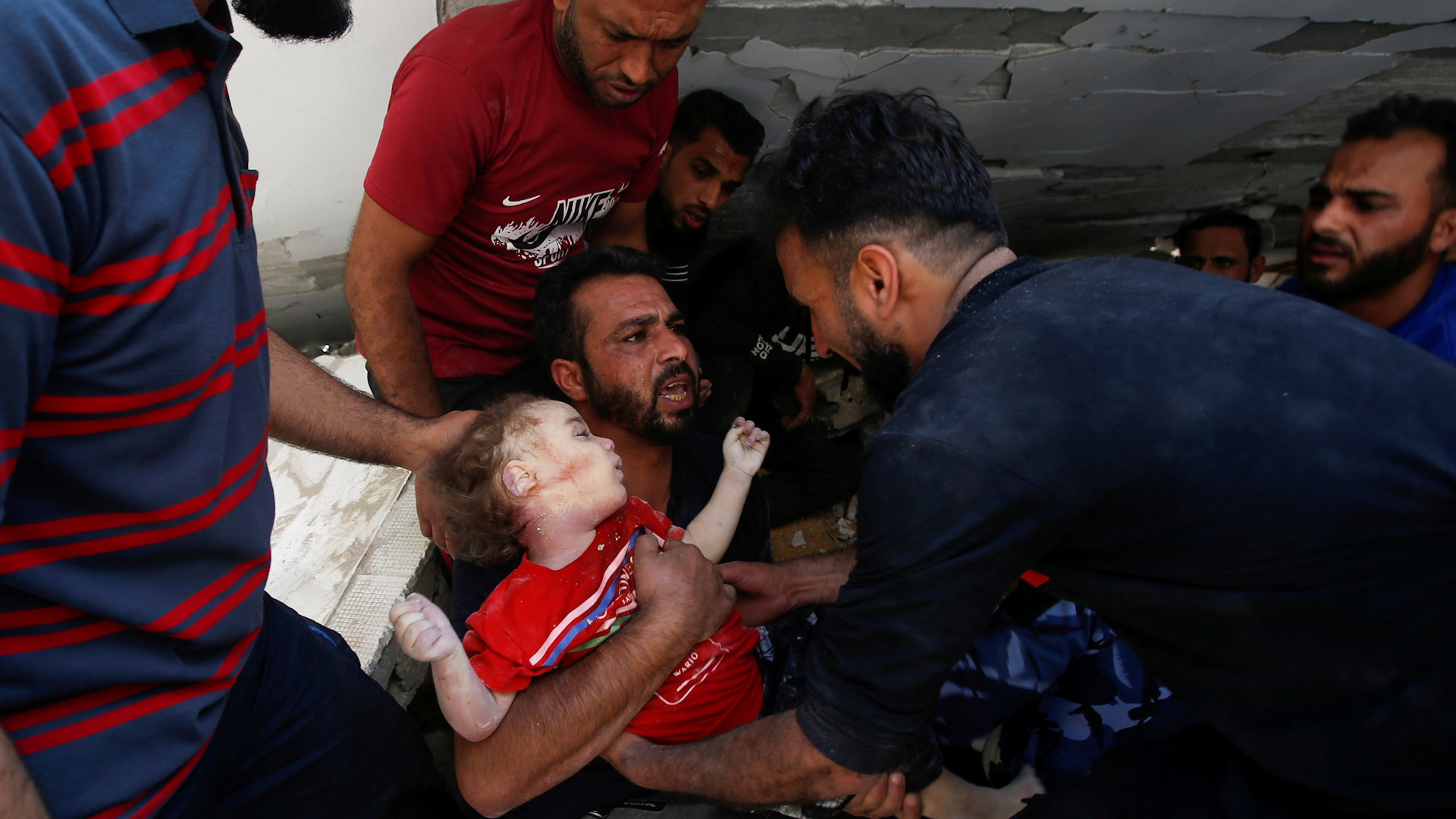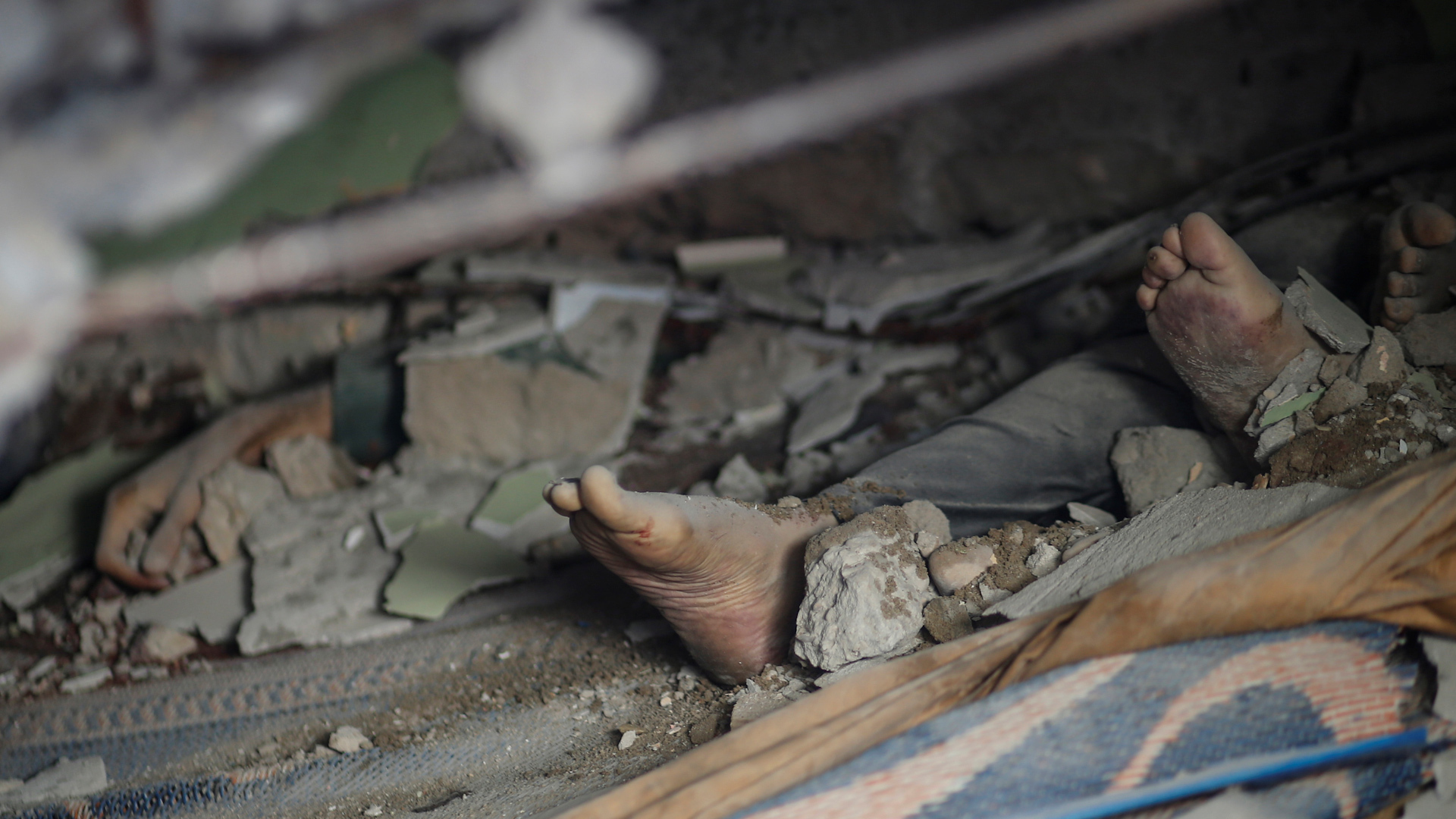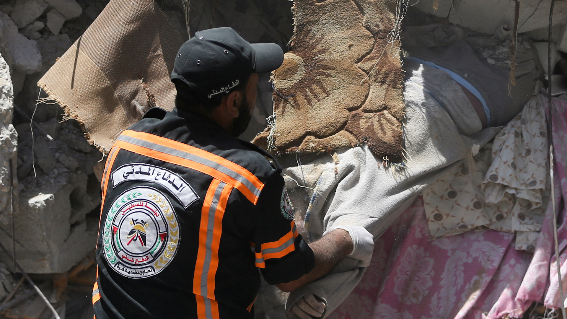 Palestinian rescue workers pulled dead bodies from the rubble of buildings destroyed by Israeli airstrikes in Gaza City. The air raids killed at least 43 people, including 8 children. Israeli Prime Minister Benjamin Netanyahu says the raids will continue in "full force" and will "take time".