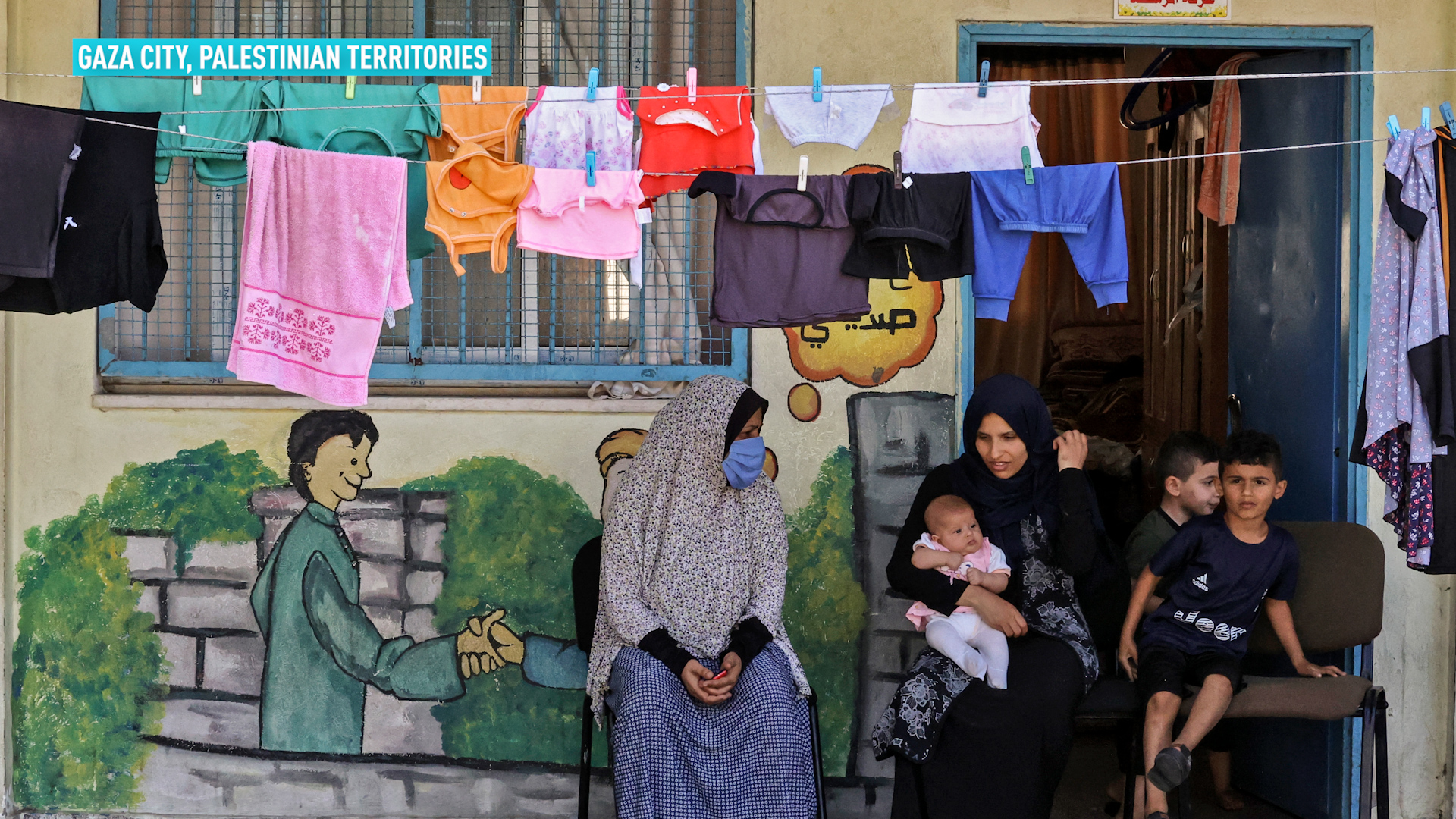 Images of rockets being fired towards Israel from outside Rafah were taken Wednesday. Displaced Palestinian civilians are taking shelter at schools and refuge centers amid the daily airstrikes by Israeli forces.