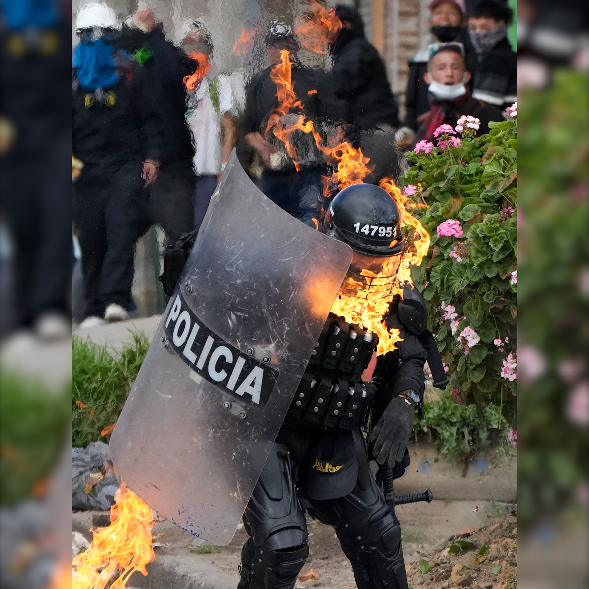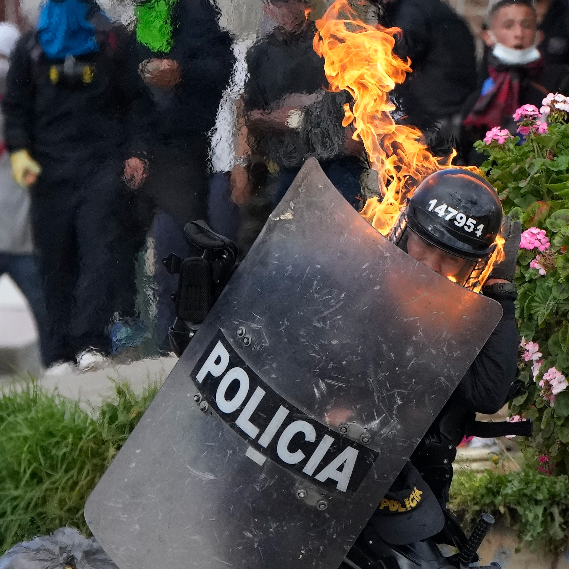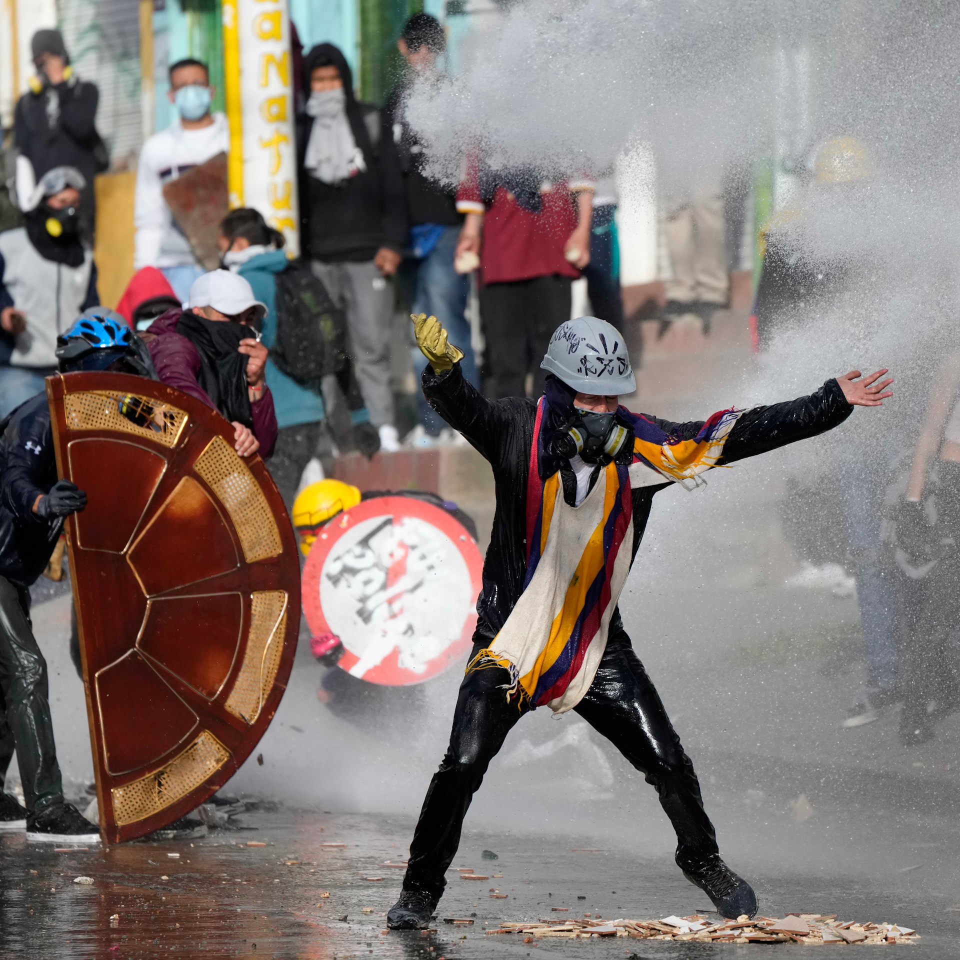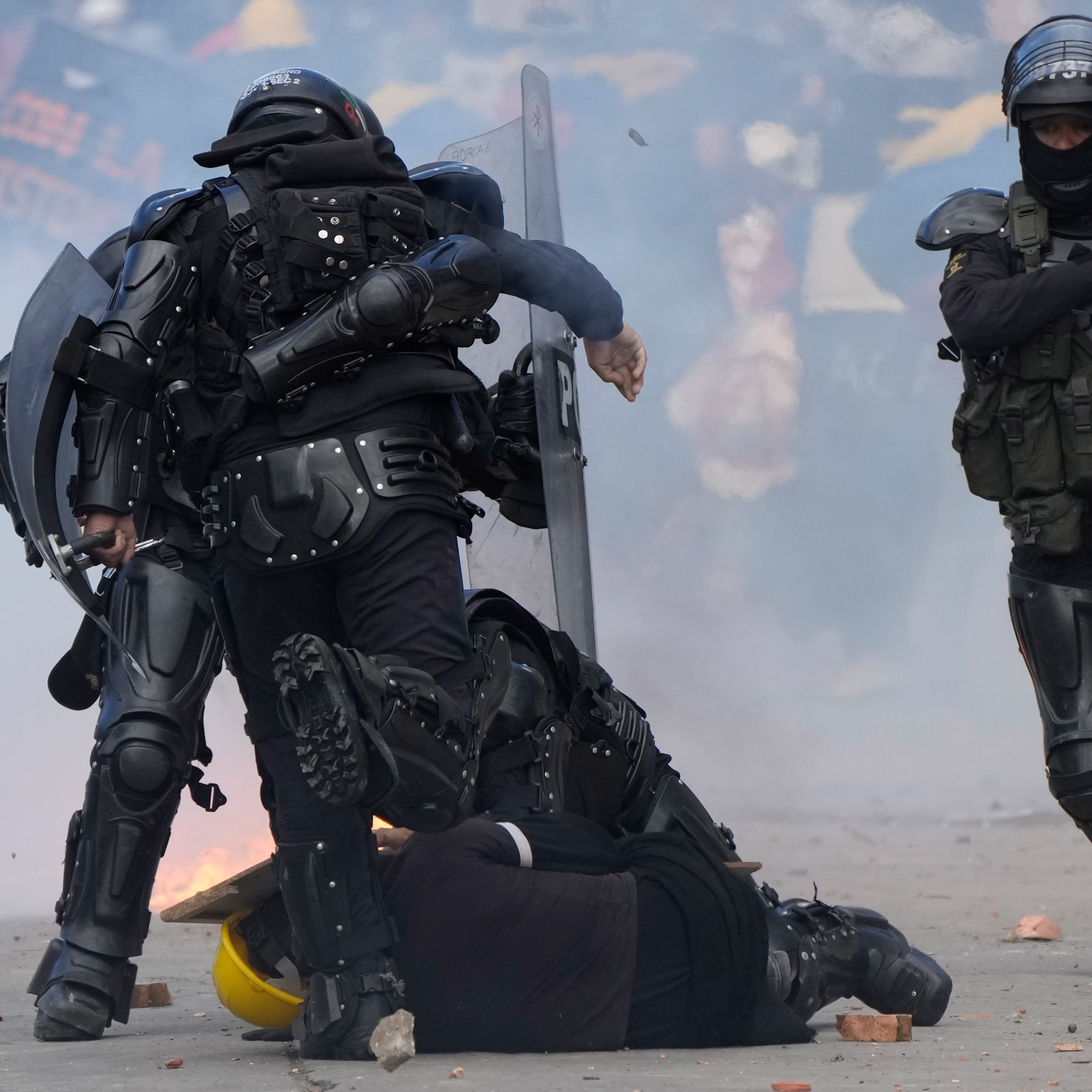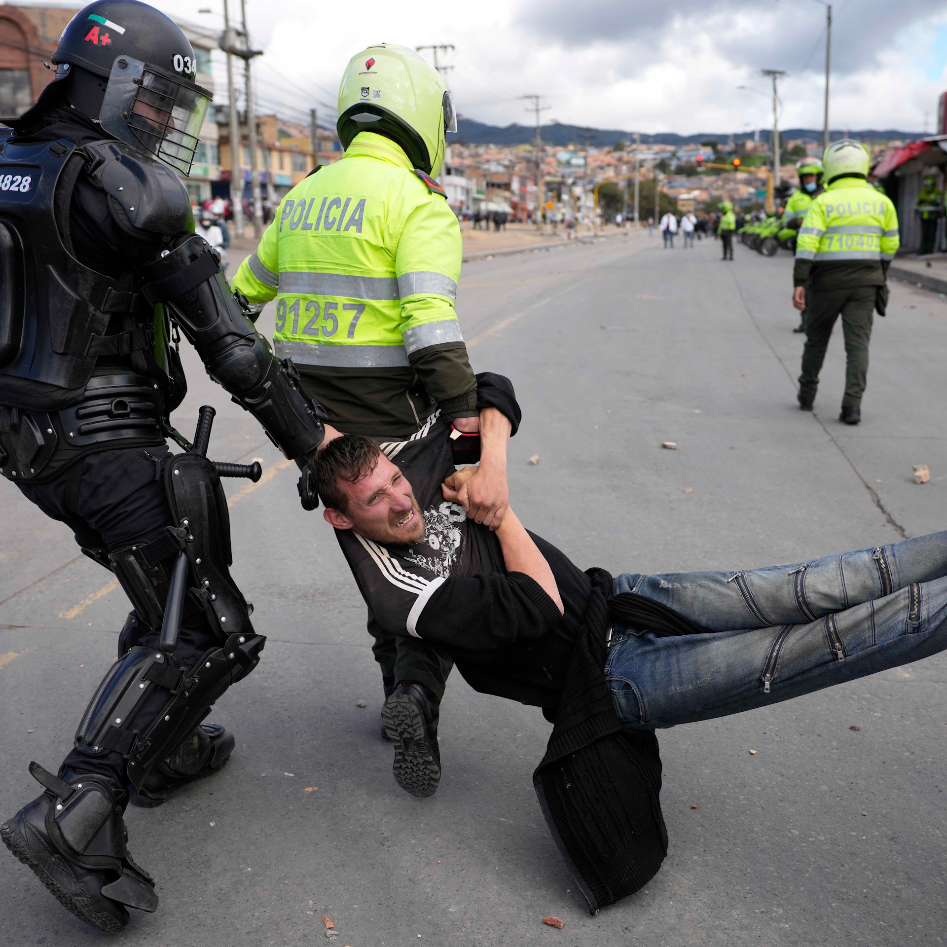 Police and protesters clash during continuing anti-government demonstrations triggered by proposed tax increases on public services, fuel, wages, and pensions in Bogota, Colombia. Over 60 people have died in demonstrations over the last 2 months.