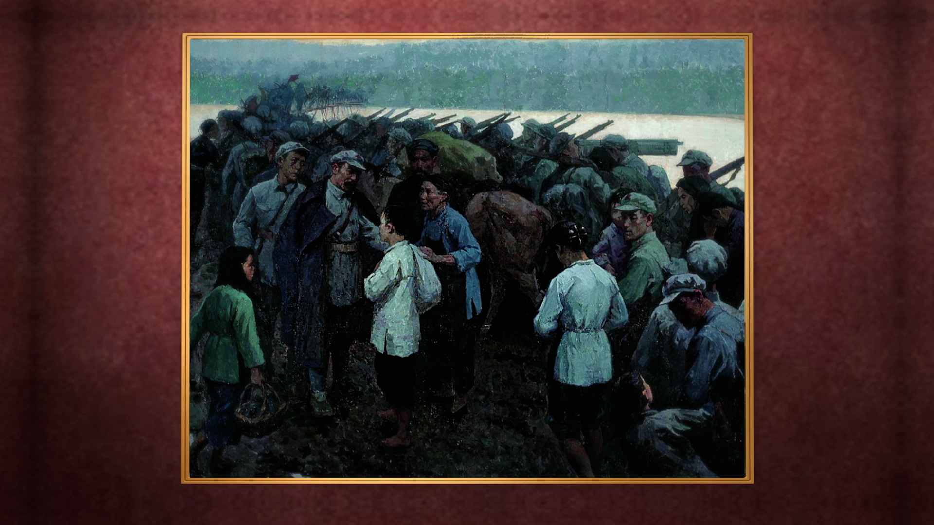 It depicts villagers gathered on the banks of Yudu River to say goodbye to soldiers heading off on the historic trek.