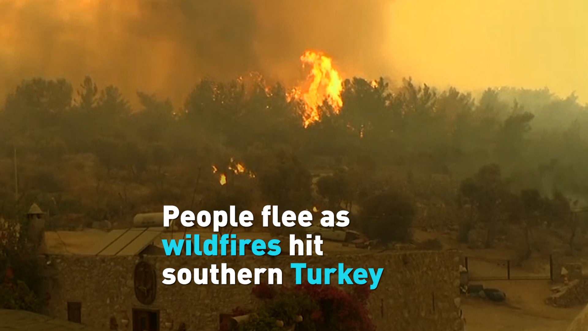 Watch as residents of Mugla and other parts of southern Turkey run away from raging wildfires. At least eight people have died in the fires as strong winds add to the danger and firefighters struggle to control the blaze.